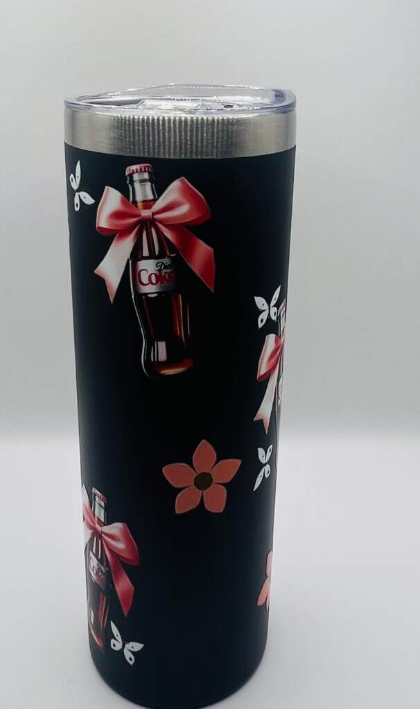 24oz Skinny Tumblet Black Custom UVDTF Wrap Leakproof Lid.