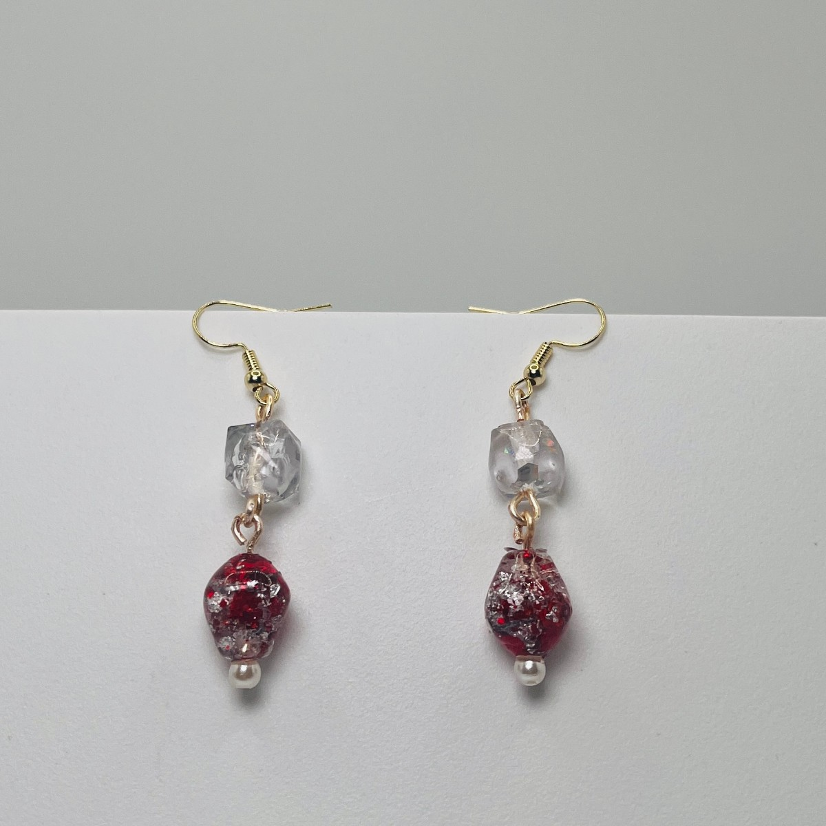 Sparkling Red and Gold Resin Beaded Earrings