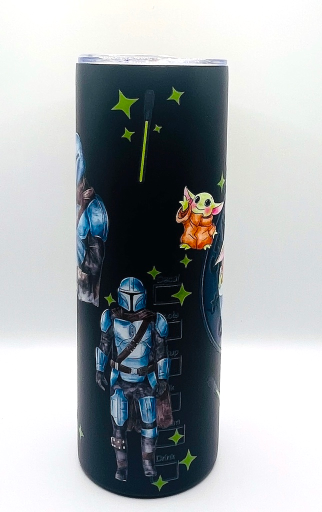 24oz Skinny Tumbler White Custom UVDTF Wrap Leakproof Lid.