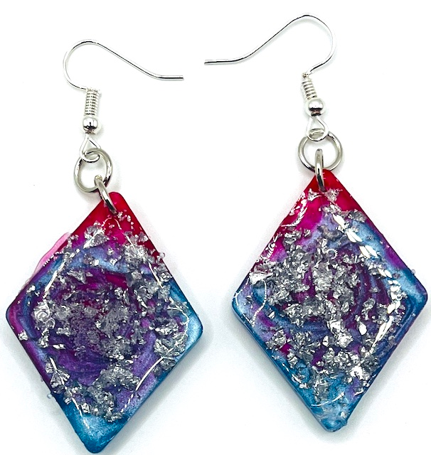 Sparkling Fuscia and Blue Glittered Resin Earrings