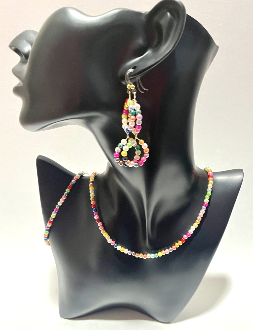 20″ Colorful Round Acrylic Beaded Necklace with Matching Bracelet and Earrings.